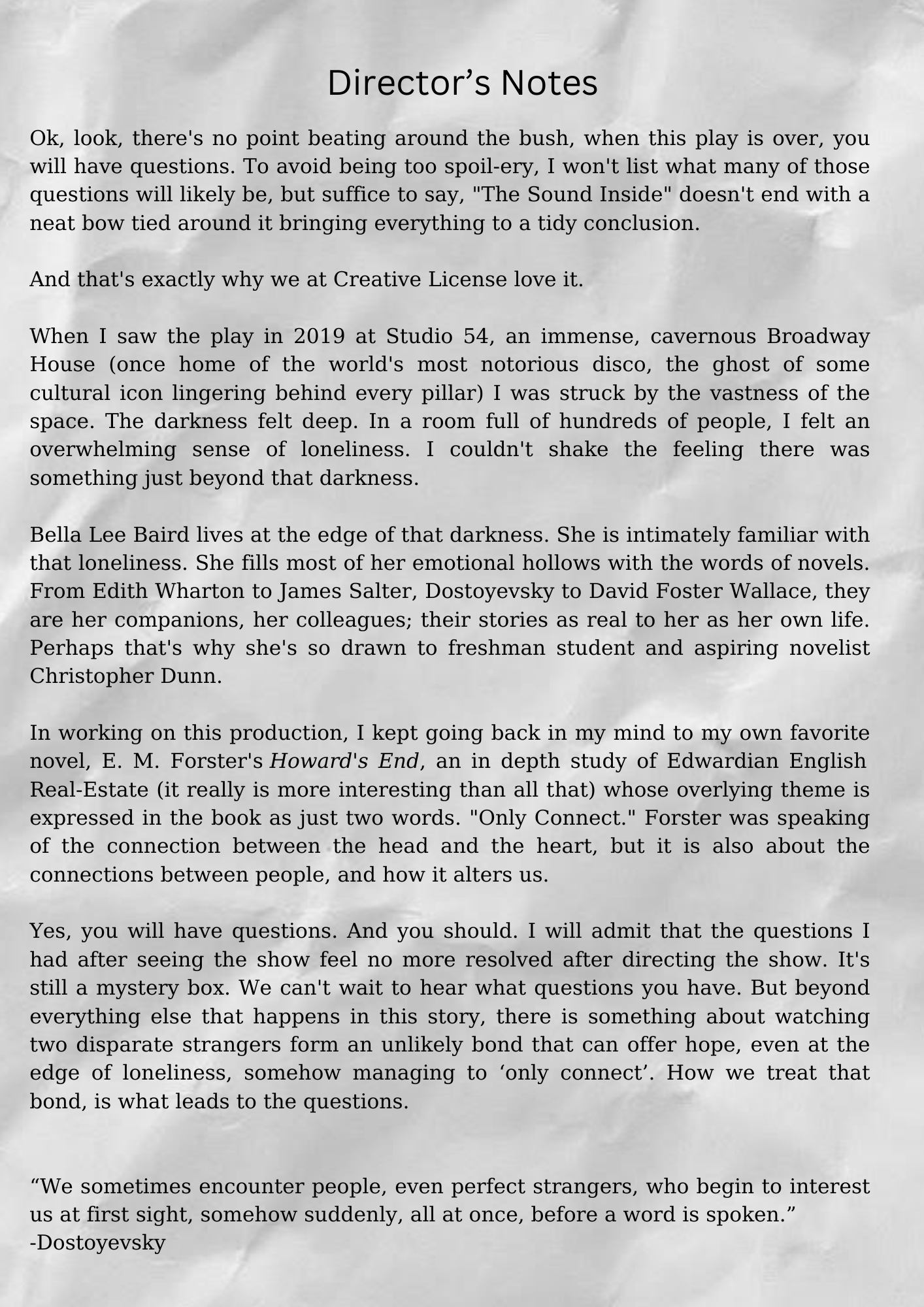 THE SOUND INSIDE presented by Creative License DIGITAL PROGRAM Join our Patreon Casey PolomaineNovember 17, 2023Comment Facebook0 Twitter LinkedIn0 Reddit Tumblr Pinterest0 0 Likes